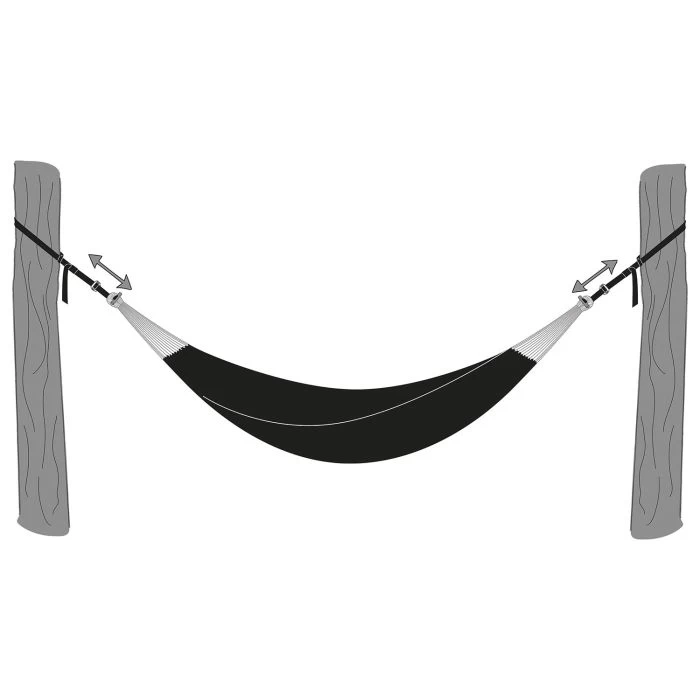 Die Amazonas Hängematten Aufhängung T-Strap ist ein baumschonendes Aufhänge-Set für alle Hängematten. Dank der extra-breiten Baumumfassung ist das T-Strap besonders schonend für die Natur und schneidet nicht in die Baumrinde ein. Set mit zwei speziellen Befestigungsgurten zum Aufhängen von Hängematten. Der Haltestift aus Aluminium dient als praktische Verbindung zur Hängemattenschlaufe. Einmal durchgesteckt stellt er sich quer und hält dann richtig fest. Das 25 mm breite Band schont die Bäume. Die Gurte sind jeweils – dank der Verstellschnalle – stufenlos von 15 bis 220 cm Länge verstellbar. Insgesamt ergibt sich so ein Verstellbereich von 30 bis 440 cm.