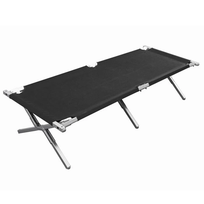 Der Rahmen und die Liegefläche des Feldbetts bestehen aus stabilen Aluminium und Polyesterbezug (600 Denier).