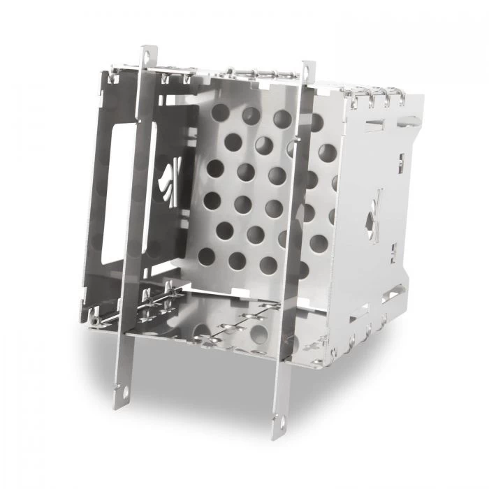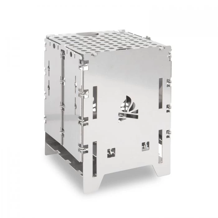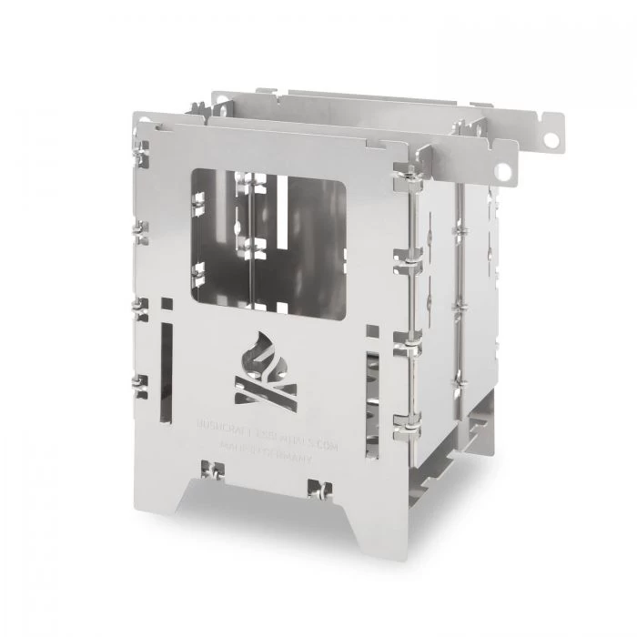 Die Bushbox LF ist ein kleiner, faltbarer Kocher, welcher aus rostfreiem Stahl und zu 100% in Deutschland hergestellt wird. Der Kocher wird mit einer aufwändigen Scharniertechnik gefertigt, welche die Scharniere nicht verkleben lässt. Er kann mit Holz, Esbit oder Trangia betrieben werden und kann Wasser kochen, Fertiggerichte erwärmen und sogar Fleisch grillen. Im praktischen Bushbox LF Set sind neben dem Kocher außerdem Topfauflagen und ein Universalrost enthalten. Dieser kann als Grill, Trangia-Plattform oder als Einlage für Holzkohle verwendet werden. Außerdem ist eine robuste Outdoor-Tasche im Lieferumfang enthalten, in welcher der Kocher im zusammengeklappten Zustand platzsparend transportiert werden kann.