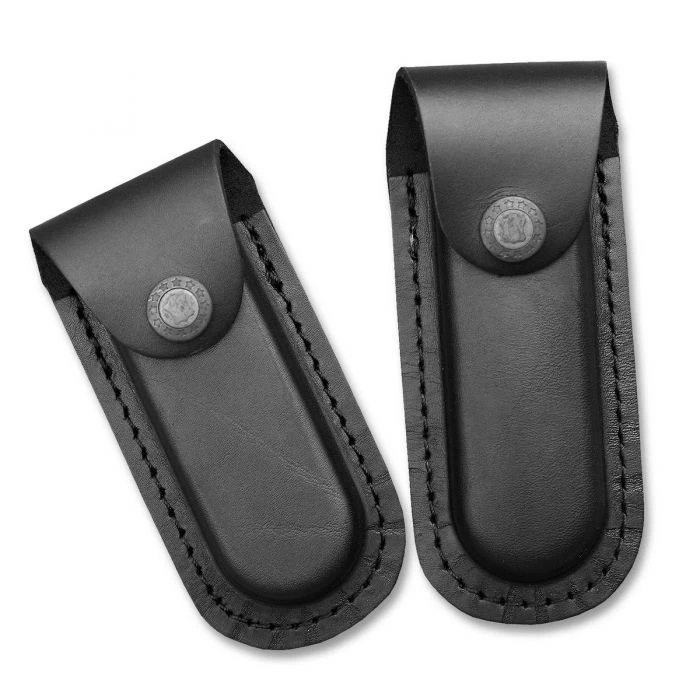 Klassisches schwarzes Lederetui, damit Sie ihr Messer gut und sicher verstauen können.