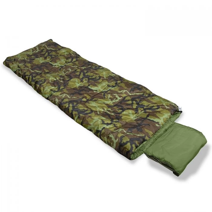 Der israelische Pilotenschlafsack von MFH ist ein praktischer Deckenschlafsack mit 2-lagige Füllung. Der Schlafsack lässt sich leicht in dem integrierten Transportsack, der gleichzeitig als Kapuze genutzt werden kann, verstauen. Ebenso praktisch ist der Tragegriff am Packriemen. So kannst den Schlafsack leicht transportieren.