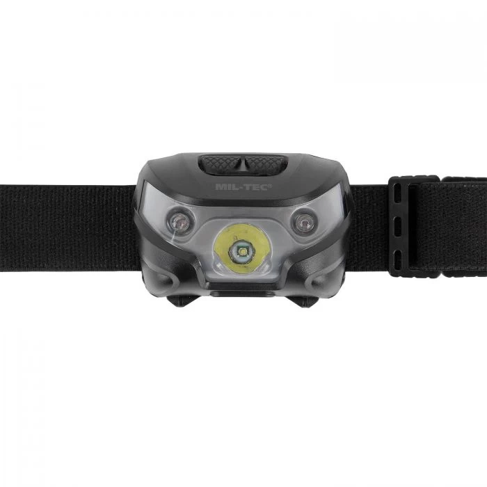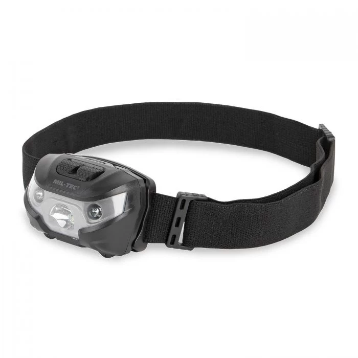 Die praktische Kopflampe Cree XPE von Mil Tec besitzt ein elastisches, verstellbares Kopfband, das an jede Kopfgröße optimal angepasst werden kann sowie verschiedene Leuchtmodi und LED-Farben. Der Leuchtwinkel ist ebenfalls verstellbar.