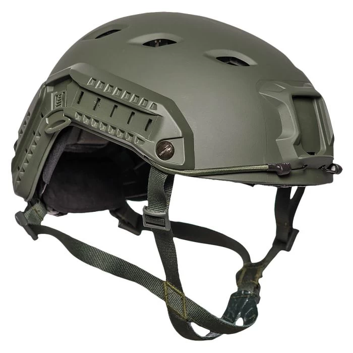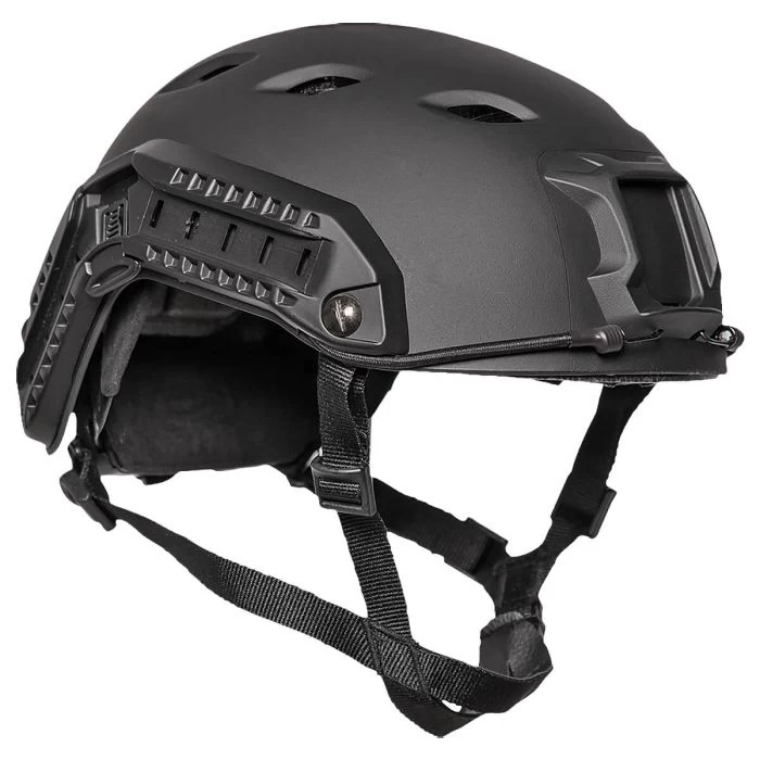 Der US Helm Paratrooper FAST W/RAIL von Mil-tec besitzt, dank der Innenpolsterung sowie dem individuell einstellbaren Innenteil, einen hohen Tragekomfort und lässt sich jeder Kopfform und -größe optimal anpassen. Der Helm besitzt seitlich abnehmbare Schienen, sogenannte Rails, an jeder Seite. Diese dienen der Aufnahme von Ausrüstungsgegenständen. Eine zusätzliche Anbringung ist an der Vorderseite des Helms zu finden. Diese kann beispielsweise zur Montage einer Helm- oder Stirnlampe genutzt werden.