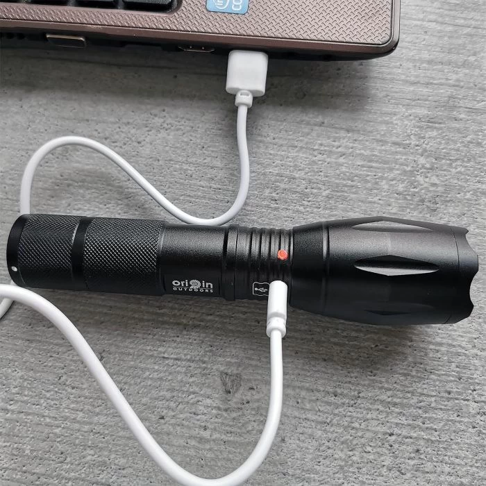 Die robuste LED-Taschenlampe Focus mit 500 Lumen besitzt einen stufenlos einstellbaren Focus der sich kinderleicht über Vor- oder Zurückschieben des Lampenkopfes einstellen lässt. Die handliche Lampe von Origin Outdoors verfügt über 3 Leuchtstufen, Blinklichtmodus und SOS-Funktion sowie einen leistungsstarken 18650-Li-Ionen Akku, welcher über den Mikro-USB-Anschluss geladen werden kann. Zusätzlich ist es möglich die Lampe mit 3 AAA-Batterien zu betreiben (nicht ladbar!).