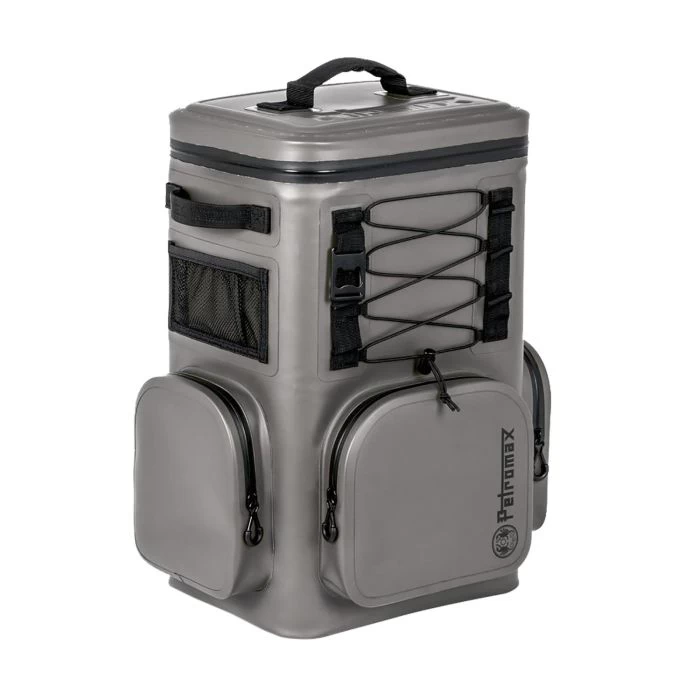 Mit dem Kühlrucksack von Petromax werden deine Speisen und Getränke bis zu 6 Tage gekühlt, und das ganz ohne auf Strom angewiesen zu sein. Nach 6 Tagen unterwegs wird immer noch eine Temperatur von 8°C gemessen. Die Kühlung erfolgt mit Eiswürfeln. Der Rucksack verfügt über einen Brustgurt, Rückenpolsterung und verstellbare Schultergurte für einen optimalen Tragekomfort. Der wasserdichte Reißverschluss sowie das wasserabweisende Nylongewebe schützen vor dem Auslaufen des Schmelzwassers. An den Laschen kann beliebiges Zubehör und Ausrüstung mit Karabinern befestigt werden, weitere Gegenstände befestigst du mit Hilfe der Spanngummis. In der großen Fronttasche, den beiden Seitentaschen und den Netztaschen findest du Zubehör zum Feuer machen. Auch Geschirr und Besteck kannst Du im Kühlrucksack transportieren. Alles in allem ist der Kühlrucksack von Petromax der ideale Begleiter für mehr als 6 Tage lang unabhängige Kühlung bei Deinem nächsten Outdoor-Abenteuer.