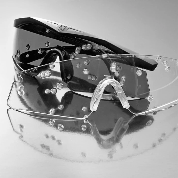 Die Polycarbonatgläser erfüllen die strengen US- und internationalen Aufprallanforderungen und sind für die Verwendung in militärischen und taktischen Einsätzen ausgelegt. Die präzisionsgefertigen Schutzscheiben bieten eine verzerrungsfreie Sicht, vollen Seitenaufprallschutz, Antibeschlagleistung und 100%igen Schutz vor schädlichen UVA-, UVB- und UVC-Strahlen.