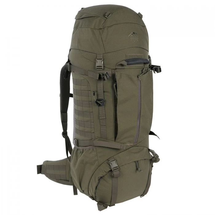 Der TT Pathfinder Rucksack von Tasmanian Tiger ist ein vollwertiger Kampfrucksack für mehrtägige Einsätze. Das seitliche Molle-System ermöglicht das einfache Anbringen und Befestigen zusätzlicher Taschen, in die große, volumenvariable Kompressionsklappe auf der Front kann ein Helm oder ähnliches verstaut werden. Das integrierte V2-Tragesystem ist ein größenverstellbares Tragesystem für mittlere bis hohe Lasten welches durch den hohen Ansatzpunkt an der Rückenplatte eine große Variationsbreite bei der Einstellung der Rückenbreite bietet. Neben dem Einsatz als Kampfrucksack eignet sich der Pathfinder Rucksack auch bestens für Mehrtagestouren.